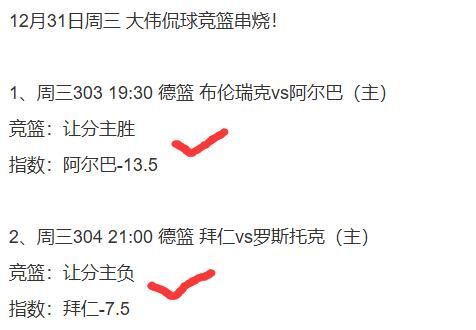 3.1、德篮2串1,看好阿尔巴+拜仁让分打出!