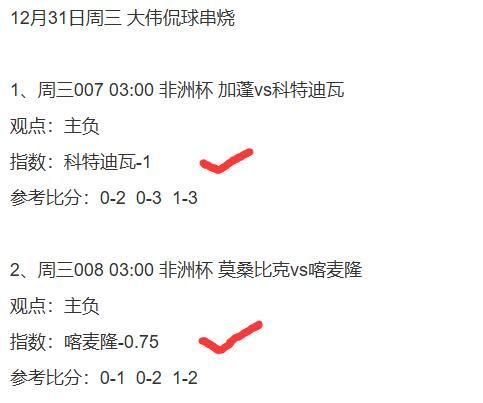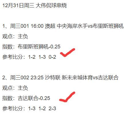 今天主要是英超、英冠、英甲的比赛,下午还有1场澳超,场次不少,2026年的第一天开始发力,再续佳绩!wx搜索关注同名公众号“大伟侃球”可查看今日更多信心私料。