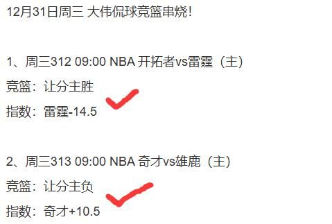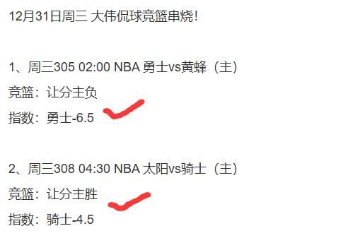 3.2、NBA2串1,看好勇士+骑士让分打出!